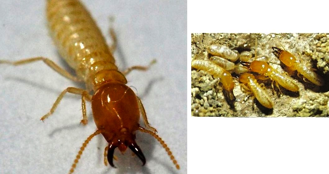 Cupins – São insetos sociais que vivem em colônias. Conhecidos vulgarmente de formiga branca, diferindo delas por possuírem corpo mole, coloração clara, pernas curtas, cabeça grande com mandíbulas avantajadas.