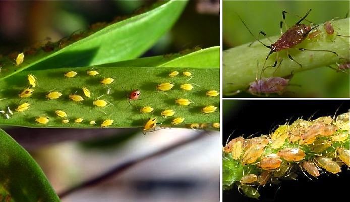 Em geral são verdes, mas algumas espécies atingem a coloração vinho e preto. Eles se reproduzem rápidamente, causando atrofiamento da planta.